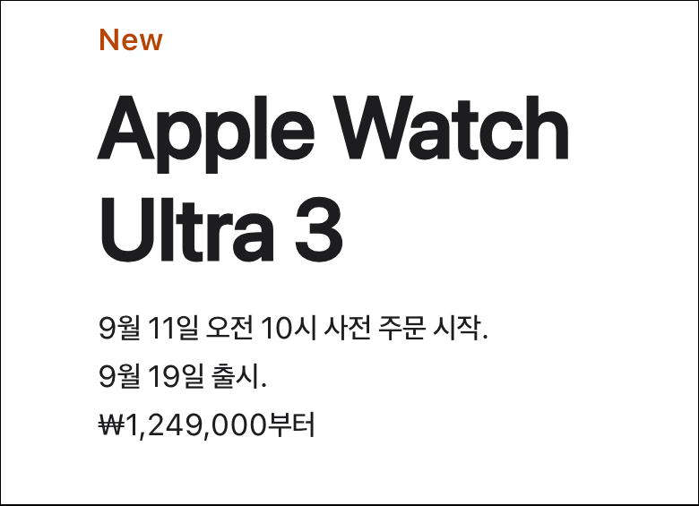 애플워치 울트라3 사전예약 날짜는 2025년 9월 11일 목요일이며, 시간은 오전 10시다.